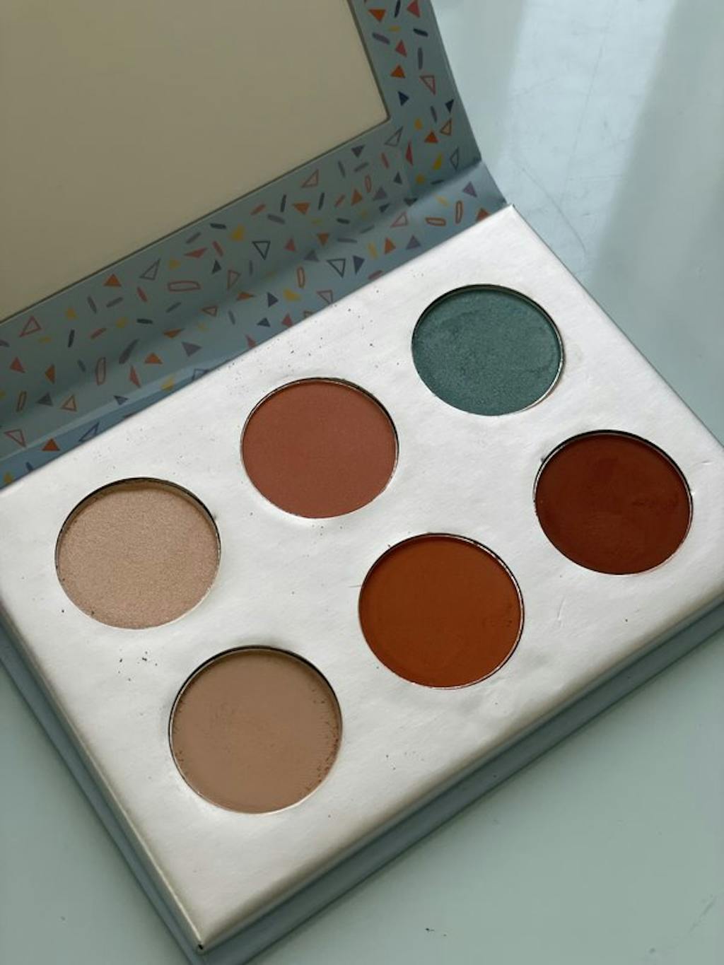 I'm in love with this palette it has some of my favorite colors. I live for neutral shades and this one is perfect for summer. I like the fact that it includes a blue shade for a fun pop of color. These color combinations create a beautiful ombré effect on eyes, the transitions are flawless. There are three shimmers and 3 mattes. The colors are pigmented, blendable, and not patchy at all. I really like the cute case it comes with, it's fun and a mirror is attached, which is a huge bonus. It is very compact great to carry in my purse. I highly recommend this eyeshadow palette if you like warm tones with a pop of color.